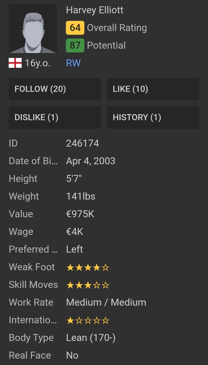 360m apr 4 2003 in london england. 7265k followers 600 following 103 posts see instagram photos and videos from harvey elliott atharveyelliott07. Fifa 20 player ratings on sep 10 2020.